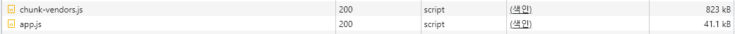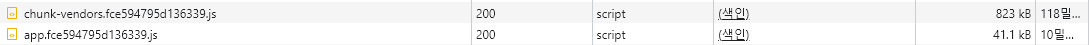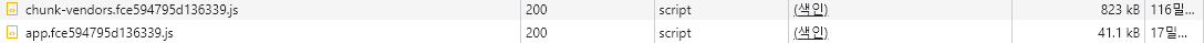 캐시설정을 하고 다시 접속하면 이렇게 js 파일에 이상한 문자열이 붙여서 나온다.