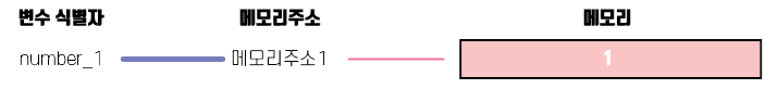 number_1이라는 식별자는 메모리 주소를 가르키고 이 메모리주소가 찾아가는 메모리에는 숫자 1이 저장되어있다.