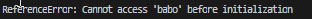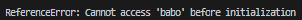 initialization(초기화)되기전에 babo라는 식별자가 가르키는 메모리주소, 메모리공간에 접근할수 없다는