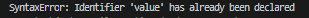 위 코드는 선언'문'을 변수에 담으려고 해서 생긴 오류다. 선언문은 표현식이 아닌 문이다.