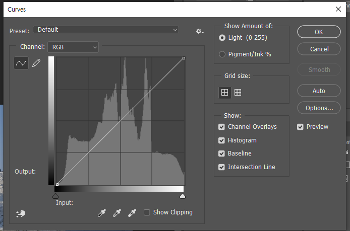 먼저 레이어 하나 복사해서 하는게 맘편하다. 되돌아가기 힘들기때문에..