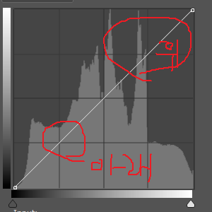 윗부분은 사진의 밝은 영역, 아랫부분은 어두운영역을 조절할수 있는 곳이다.