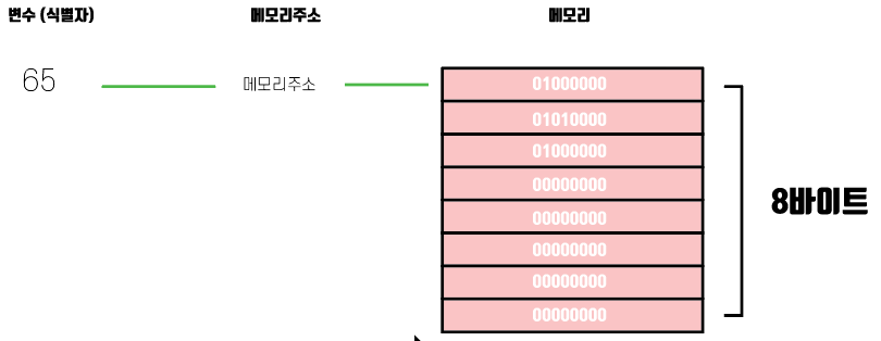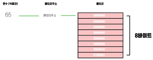 65라는 숫자는 이렇게 8바이트의 공간에 저장이 된다.