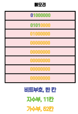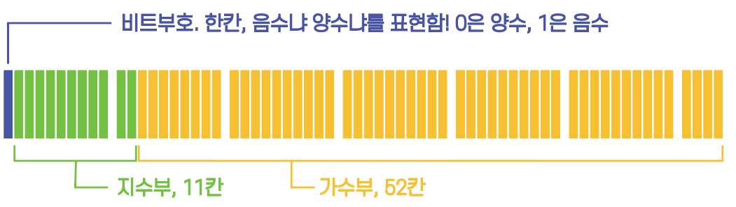 # 총 64비트의 공간은 비트부호, 지수부, 가수부로 활용된다