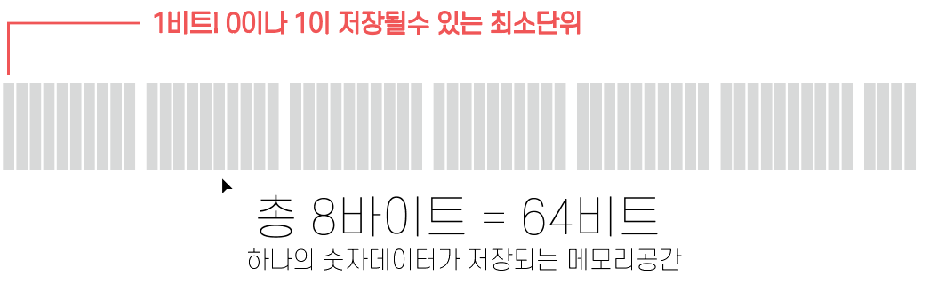 숫자값이 저장되는 8바이트의 공간은 총 비트수로 생각하면 64비트이다.