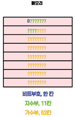 # 총 64비트의 공간은 비트부호, 지수부, 가수부로 활용된다