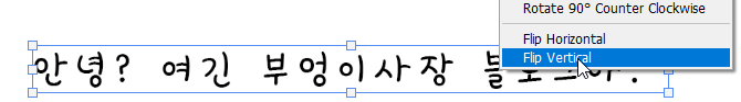 cntl+t로 프리트랜스폼드가서 마우스 우클릭후 반전하면된다. 플립버티칼임.
