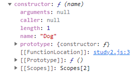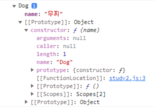또 constructor 프로퍼티가 들어있고 거기엔 Dog함수가 들어있다.