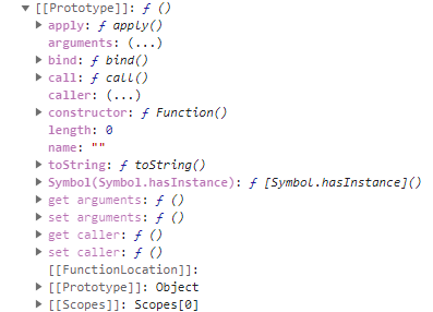 저렇게 arguments, caller, length, name, prototype이라는 프로퍼티가 들어있다.