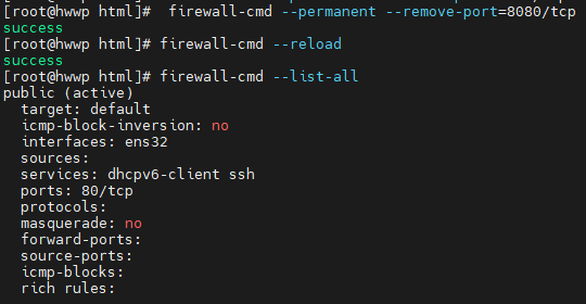 firewall-cmd --permanent --remove-port=8080/tcp