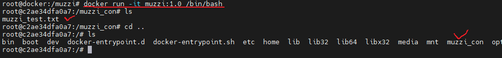 docker run -it muzzi:1.0 /bin/bash