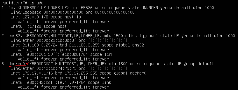 이 인터페이스의 아이피가 도커의 호스트 네트워크가 되는거다.