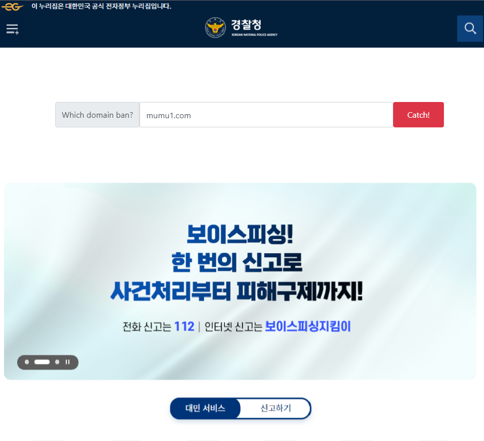 이럴수가.. mumu.com도메인이 경찰에게 벤당했다는 웹사이트가 떠버렸다.