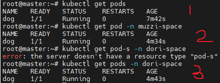 이전에 muzzi_space, dori_space를 만들어주었고 해당 네임스페이스에 각각 dog라는 pod를 만들어주었기 때문에, 중복된이름 에러를 띄우지 않는것이다.