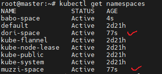 두번째는 -n옵션에 muzzi-space를 붙여주었다