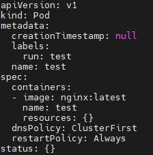 kubectl run test --image=nginx:latest --dry-run -o yaml