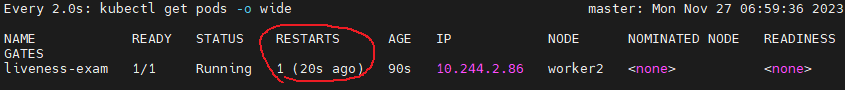 스샷을 놓쳤는데 70초쯤 재시작카운트가 하나 증가했다.