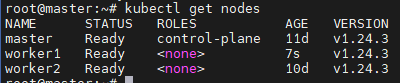 잠시후에 마스터노드에서 worker1노드가 잡히게 되었다.