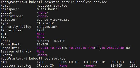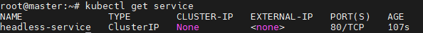 headless서비스도 잘 만들어졌다. CLUSTER-IP컬럼이 None으로 되어있다.
