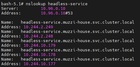 신기하게 headless-service에 대한 도메인이 세개와 각각 세개의 아이피가 나오게 된다.