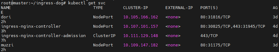 으로 클러스터를 구축했는데, 이렇게 dog.com을 호스트로 ingress controller를 구성해서 테스트 해봤다.