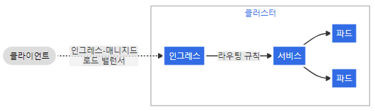 공식문서 이 그림에서 인그레스,매니지드 로드 밸런서가 인그레스 앞단에서 클라이언트 요청을 받는데, 아까 테스트해봤던것처럼 클러스터를 구성한 각각의 vm들 혹은 인스턴스들에게 각각 로드밸런싱 해준다는건지 잘 모르겠지만 아마 후자같다. 강의내용에선 전자라고했는데.. 후자같음.