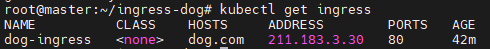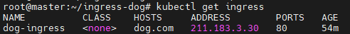 ingress정보를 보면, ADDRESS컬럼이 211.183.3.30으로 되어있다.