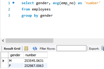 메인쿼리의 gender부분과 서브쿼리의 select부분이 같아야한다.