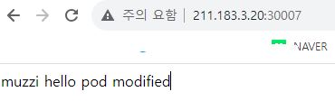 내용은 muzzi hellp pod라고 되어있다. 이걸 nodePort서비스에 연결된 deployment에 만들거다.