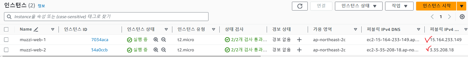 두 인스턴스를 웹서버로 동작하는 웹사이트가 잘 생성되었다.