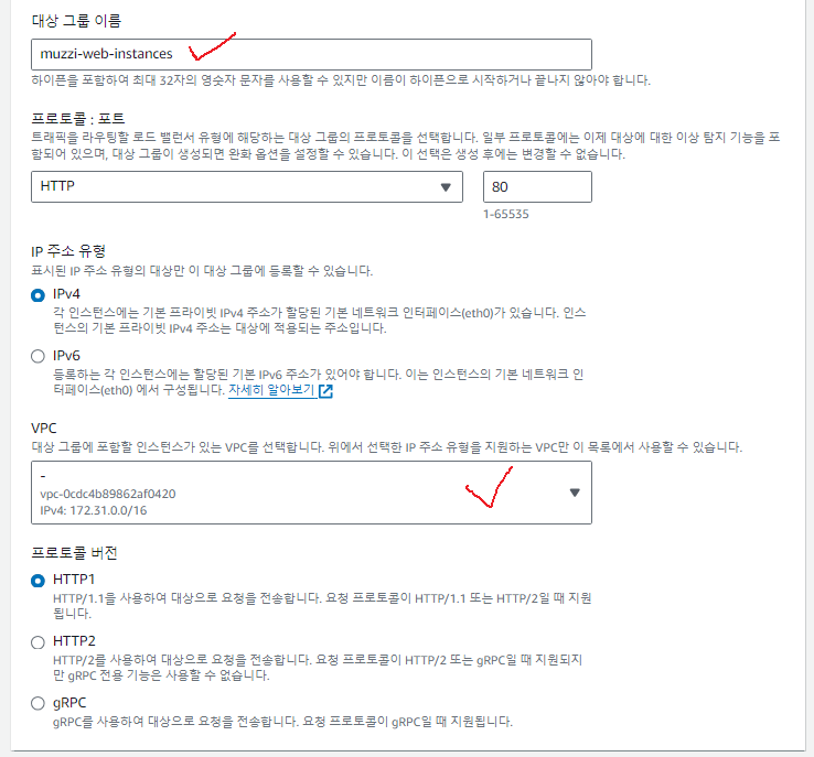 대상그룹을 만들었어도 이 대상그룹에 어떤 인스턴스가 웹서버인지 정확하게 구분해줘야하기때문에 설정을 해줘야한다.
