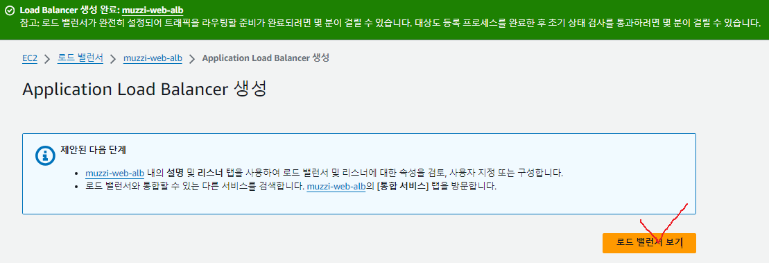 그리고 '로드밸런서 생성' 버튼을 눌러주자.
