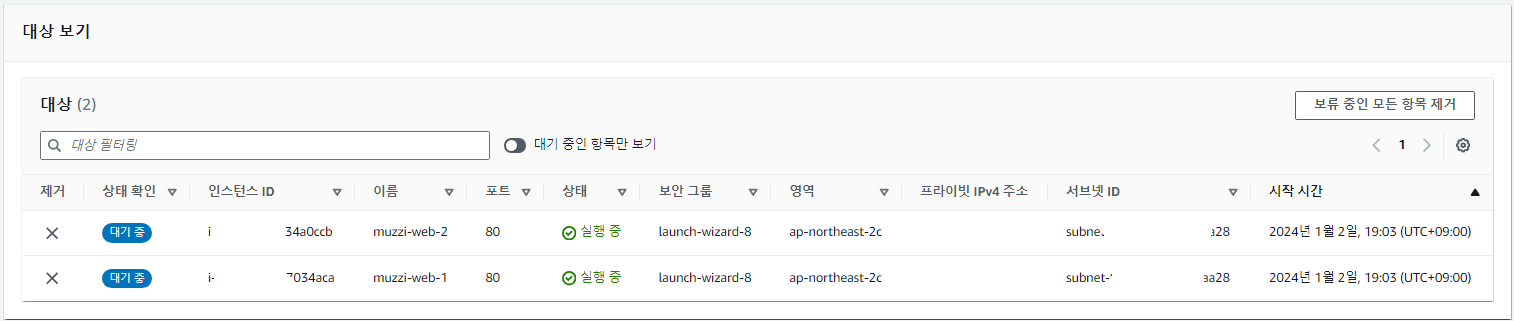 만약 vpc나 대상그룹 설정이 이상하게되어있으면 여기에 인스턴스가 안뜰수도 있다..