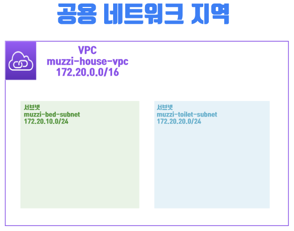이렇게 난 muzzi-bed-subnet 172.20.10.0/24라는 서브넷과, muzzi-toilet-subnet 172.20.20.0/24처럼 두개를 만들어줄거다.