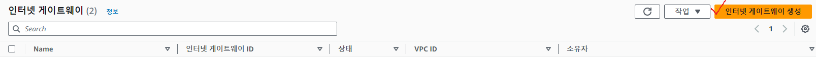 '인터넷 게이트웨이 생성' 버튼을 눌러서 만들어주자