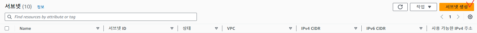 그럼 이러한 화면이 뜨는데, '서브넷 생성' 버튼을 눌러서 서브넷을 만들어주자.