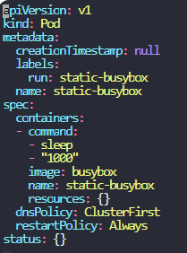 kubectl run static-busybox --image busybox $samp --command -- sleep 1000 > static-busybox.yaml