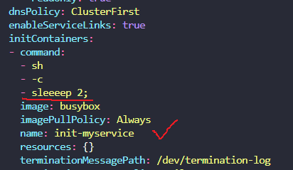 init-myservice라는 컨테이너의 command에 sleep을 늘여놨네