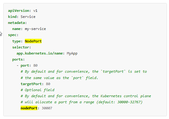 커맨드로 nodeport가 안붙어서 다큐먼트 보면.