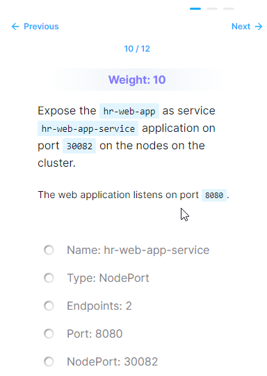 kubectl expose deployment hr-web-app --name hr-web-app-service --type NodePort --port 8080 $samp > hr-web-app-service.yaml