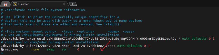 저기 swap.img로 시작하는데를 주석처리하고 저장.