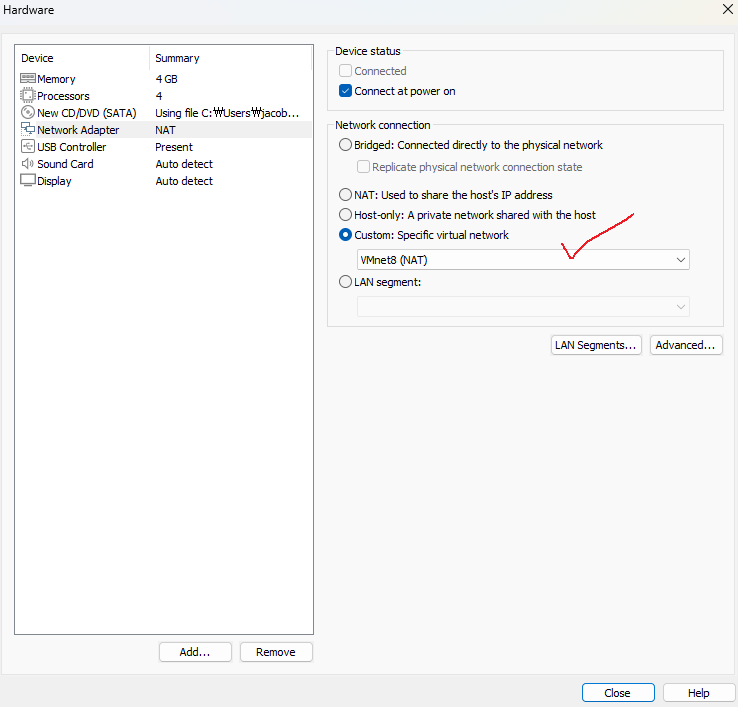 VM웨어에서 본인이 NAT네트워크 만든거에 따라서 저건 변할 수 있다. 난 VMnet8번