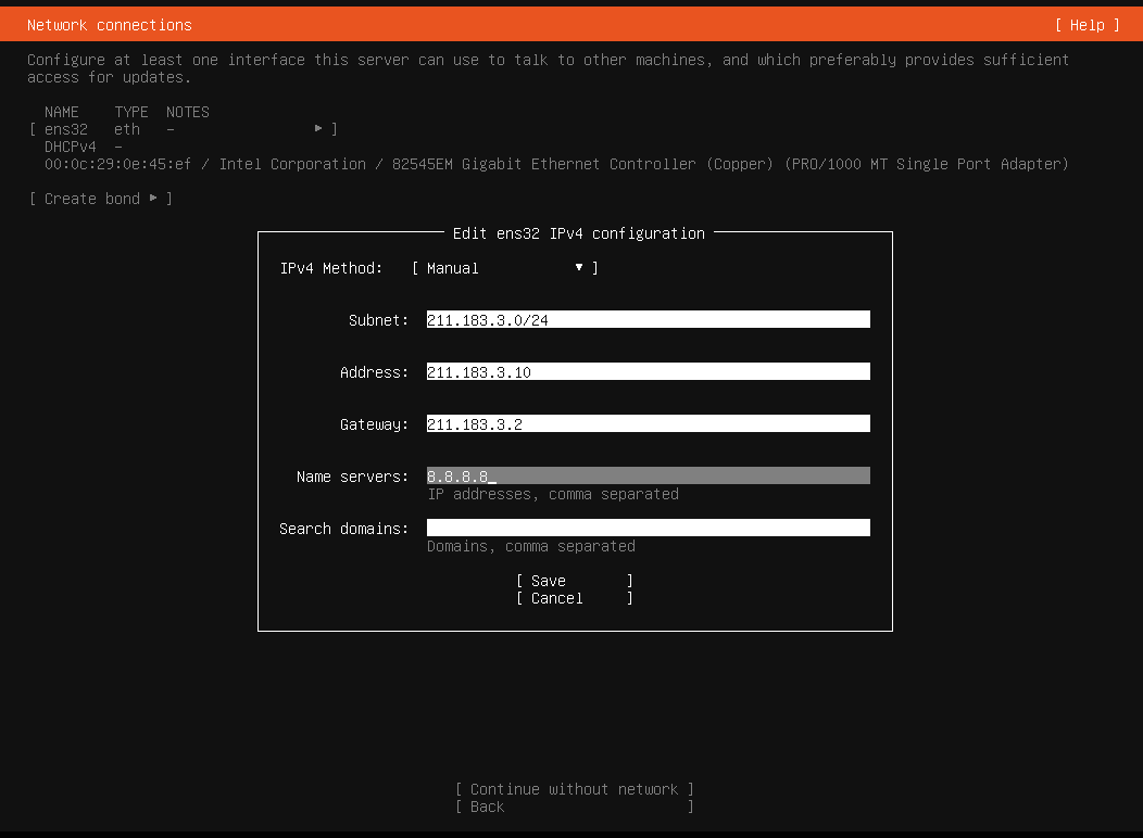 이런 창이 뜰건데 첫번제 subnet은 VM아까 열어둔 VMnet8번대 대역인 211.183.3.10/24로 함.