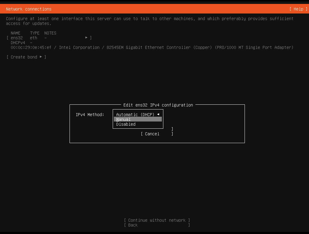 저 ens32에서 엔터누르고 IPv4설정으로 넘어가샘