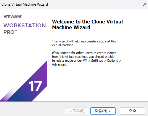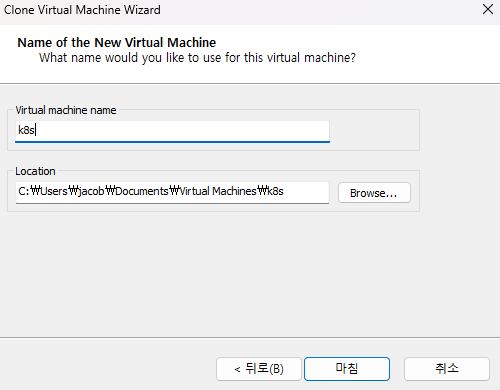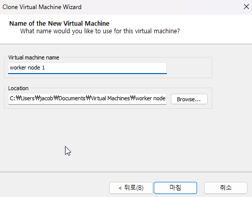 아까 만들었던 k8s VM을 클론하자. 사진은 worker node 1만 헀는데 worker node1, worker node 2 VM 두개 만들어서 똑같이 하면됨