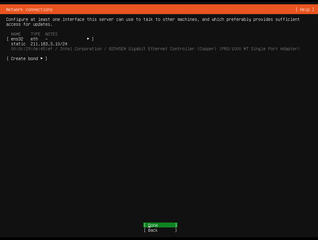 이런 창이 뜰건데 첫번제 subnet은 VM아까 열어둔 VMnet8번대 대역인 211.183.3.10/24로 함.