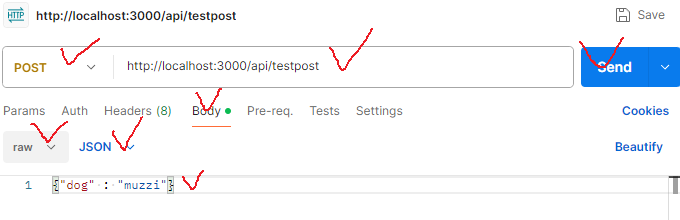 먼저 testget api요청을 테스트해볼건데 체크한 부분을 수정하고 send하면