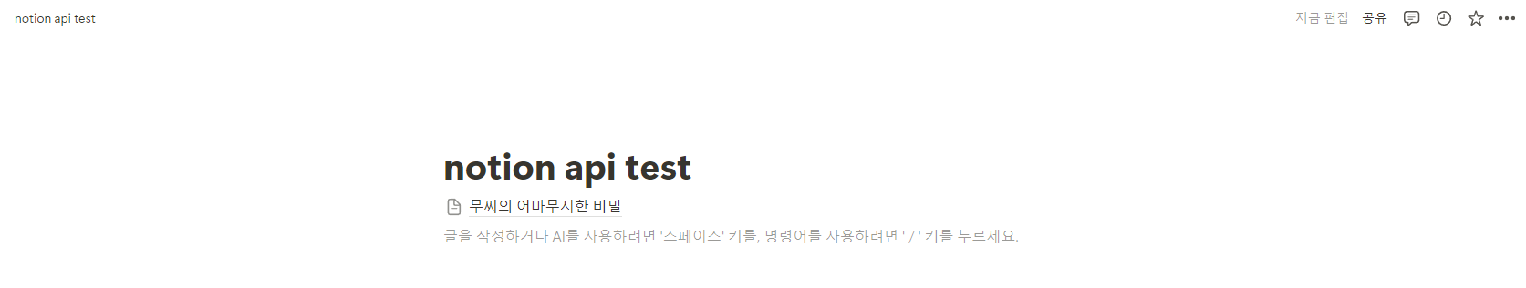 간단히 테스트용 notion api test라는 페이지를 만들었음.