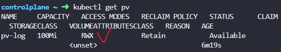 pending 상태인 pvc에선 access mode가 안나옴 ㅡㅡ