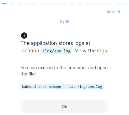 kubectl exec -it webapp -- cat /logs/